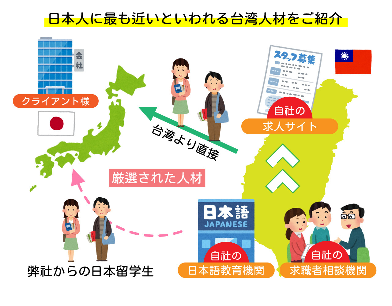台湾現地の日本語スクールから、優秀な人材を直接紹介します!